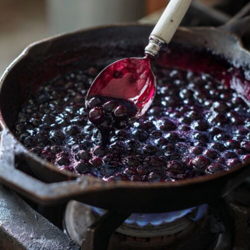 - Make the Blueberry Jam: Add the blueberries, granulated sugar, and lemon juice to a small skillet over medium heat. Bring to a simmer and cook for 7 to 8 minutes, stirring often, until the berries soften and the mixture thickens slightly. Remove from the heat and let it cool completely.2 cups frozen wild blueberries, ½ cup granulated sugar, 1 lemon