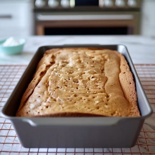 Do not try to unmold this cake unless you enjoy unnecessary risk. A 9×13 pan is exactly where this dessert wants to live. Slice it cold, scoop it out, and move on with your life. Sheet pan desserts are popular because they understand reality.