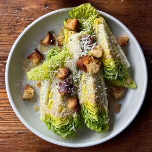 If anchovies scare you, this is the salad that fixes that. Once they’re smashed into a paste, they stop being “fish” and start being “why does this taste so good?” and that’s a huge upgrade. Every caesar you’ve loved had anchovies in it, even if no one told you.