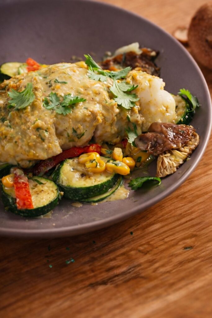 The fish basically steams itself while coconut milk and green curry do all the heavy lifting, filling the kitchen with “wow, you really cooked” energy—even though the oven did most of the work.