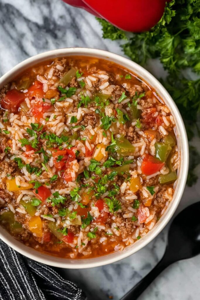 Let’s face it—stuffing peppers sounds fun until you’re wrestling slippery veggies and burning your fingers. That’s why this Stuffed Pepper Soup Crockpot version exists: to save your dinner and your sanity. Same great taste, zero pepper surgery.