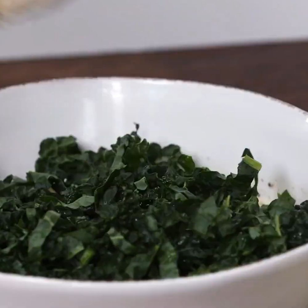 - Build the Base: Place the chopped kale in a large serving bowl. Pour the dressing over the kale so it starts to coat the leaves.