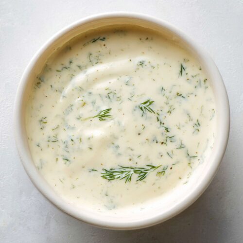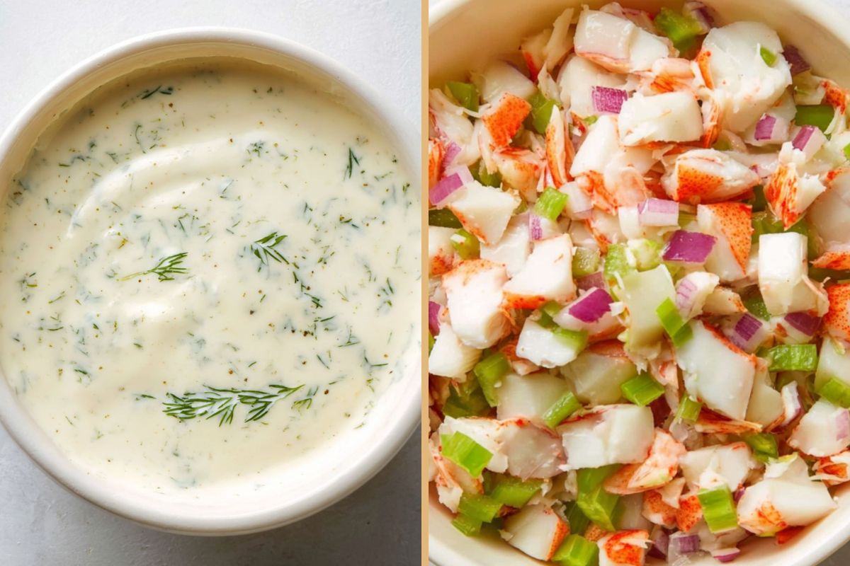 - Make the Dressing: In a small bowl, whisk together the mayonnaise, lemon juice, Old Bay Seasoning, salt, black pepper, garlic powder, sugar, and fresh dill until smooth and creamy.¾ cup mayonnaise, 2 teaspoons lemon juice, ¾ teaspoon Old Bay Seasoning, ¼ teaspoon salt, ¼ teaspoon black pepper, ¼ teaspoon garlic powder, ¾ teaspoon granulated sugar, 1 tablespoon chopped fresh dill