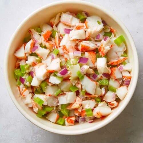 If you’re after a crab salad recipe that’s easy, homemade, and doesn’t involve real crabs giving up their lives, welcome to your new favorite.