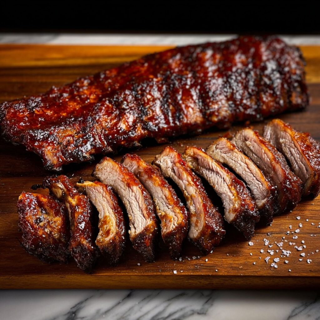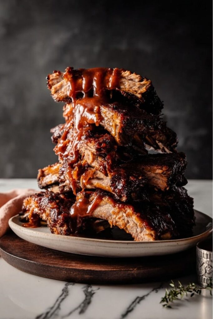 - Rest and Serve: Transfer the ribs to a cutting board and let them rest for 5 minutes. Slice between the bones and serve warm, with extra BBQ sauce on the side if you like.