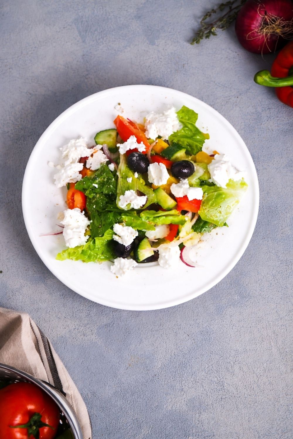 Traditional Greek salad doesn’t even include lettuce, but here we are. If you like the crunch, keep it, but if it starts getting soggy five minutes later, ditch it next time. Honestly, skipping lettuce makes this feel instantly more “authentic” and less like a side salad at a diner.