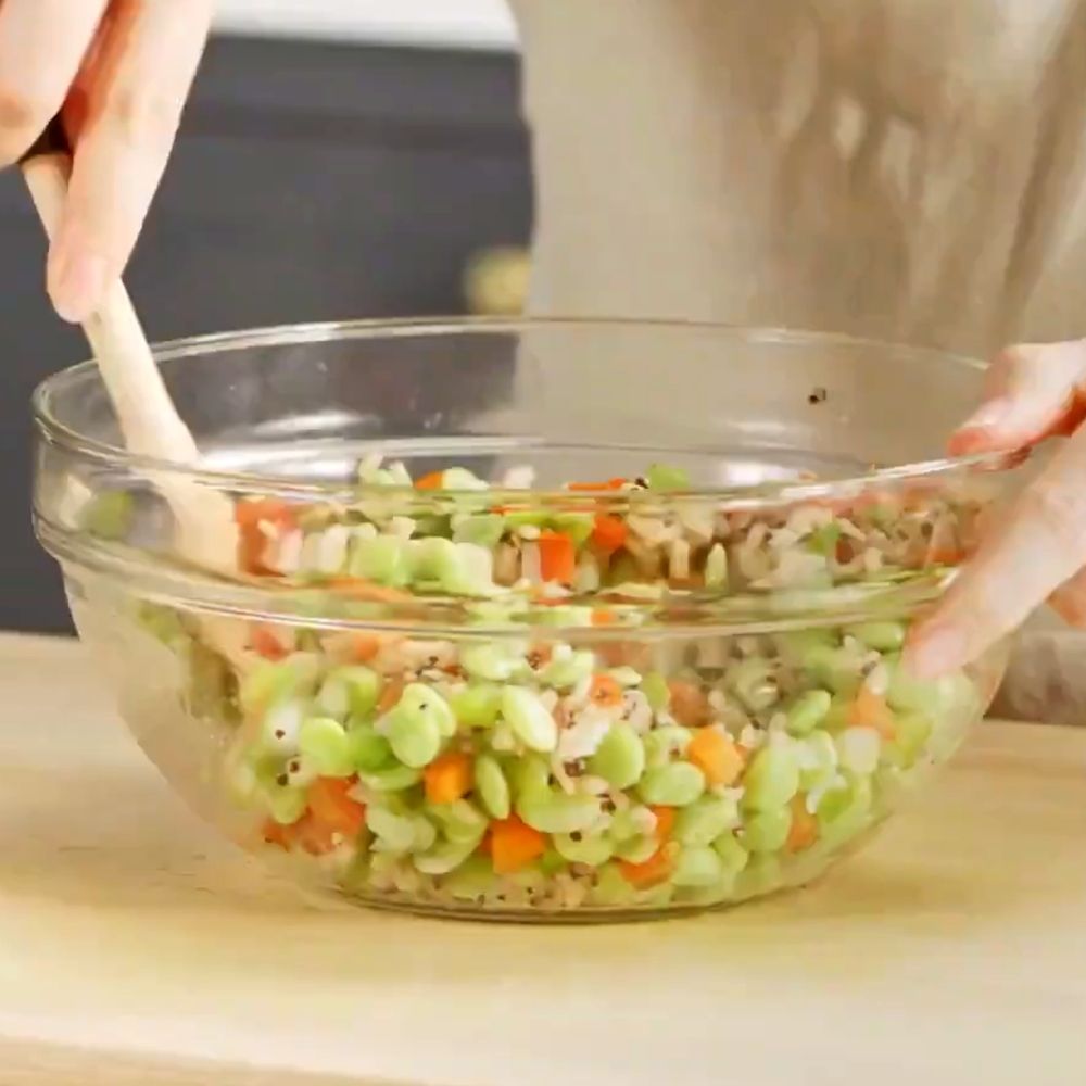 - Combine Grain Mixture: Add the cooked lima beans to a mixing bowl with the tomato trinity mix and cooked skinny grains. Toss gently to combine. Season lightly with salt and pepper if needed.