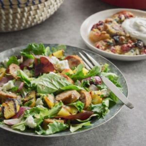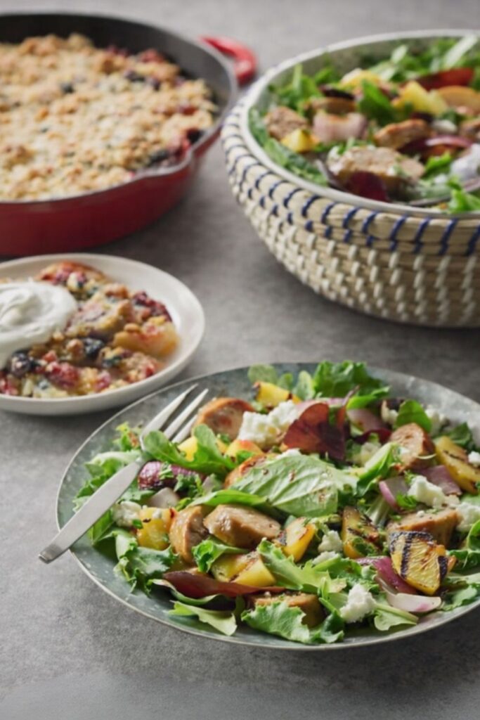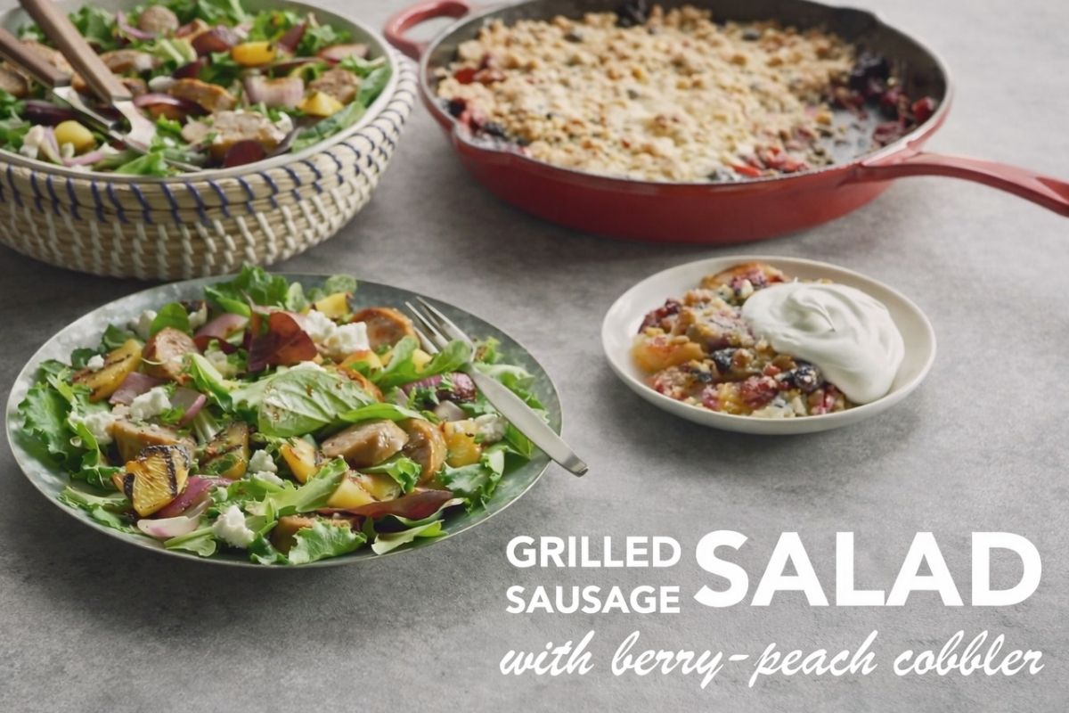 Grilled Sausage Salad with Berry-Peach Cobbler