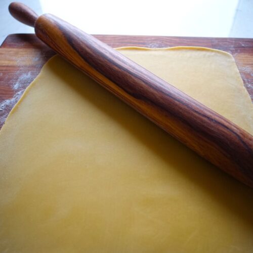- Roll Out the Dough: Once the dough is rested, place it on a lightly floured surface. Roll it out from the center outward, adding a little flour on top as needed, until it’s very thin — almost see-through (about 1 millimeter thick). You may need to cut the dough in half and work in batches.