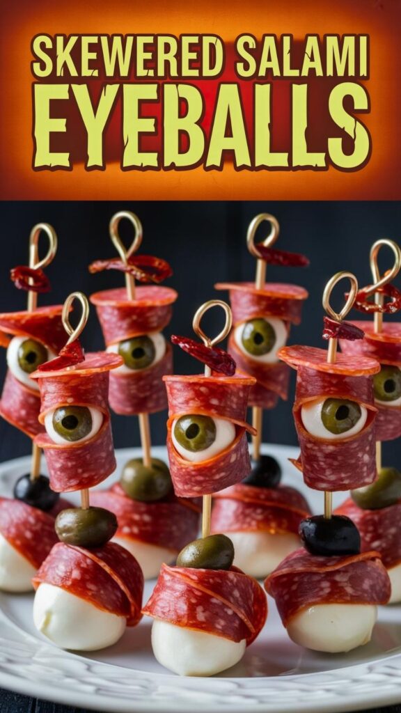 Skewered Salami Eyeballs: Because Your Halloween Snack Table Deserves Some Staring Contest Champions