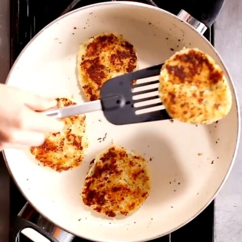 - Fry Potato Cakes: Heat the remaining 1 tablespoon canola oil in a skillet over medium heat. Cook the potato cakes for 3 to 4 minutes per side until golden brown and crisp.