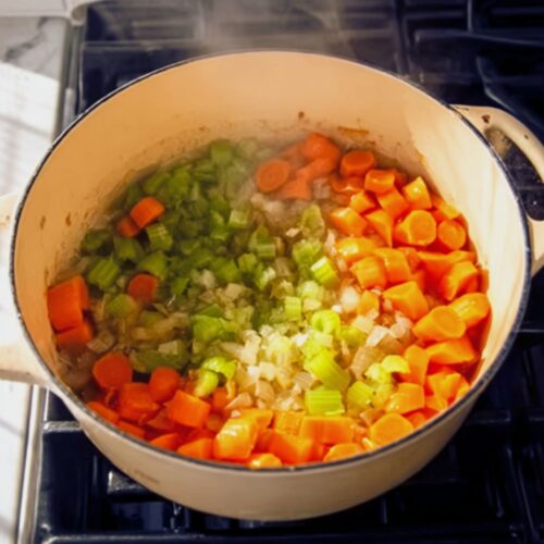 - Sauté the Veggies: If the pot is dry, add a bit more oil. Sauté the onion and garlic for about 2 minutes, then add the carrots and celery. Cook for another 2 minutes until the onion softens.1 medium onion, 1 tablespoon minced garlic, 2 celery stalks, 3 medium carrots