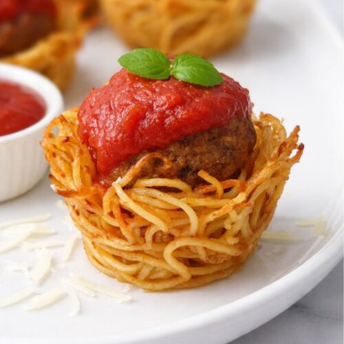 Spaghetti and meatballs—but party size! These little bites are fun, filling, and super easy to serve.