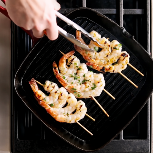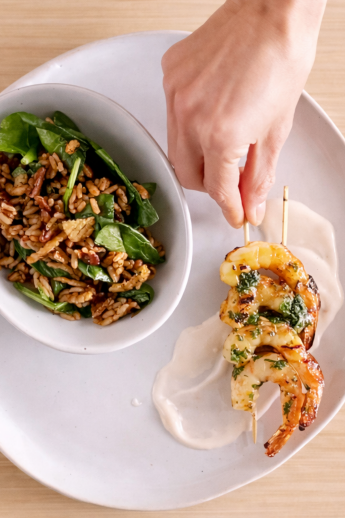 If you don’t have skewers, just cook the shrimp loose in a grill pan or hot skillet. Skewers are mostly for vibes and easier flipping, not because the shrimp demand a stick-based lifestyle. Just keep them in a single layer so they sear instead of steaming.