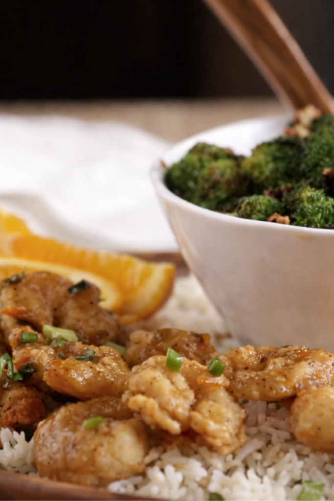 - Serve: Spoon the cooked rice into bowls, pile on the saucy shrimp, and serve the crunchy broccoli alongside. Add orange slices on the side for a little flair and a not-so-subtle hint of what’s making everything taste so good.