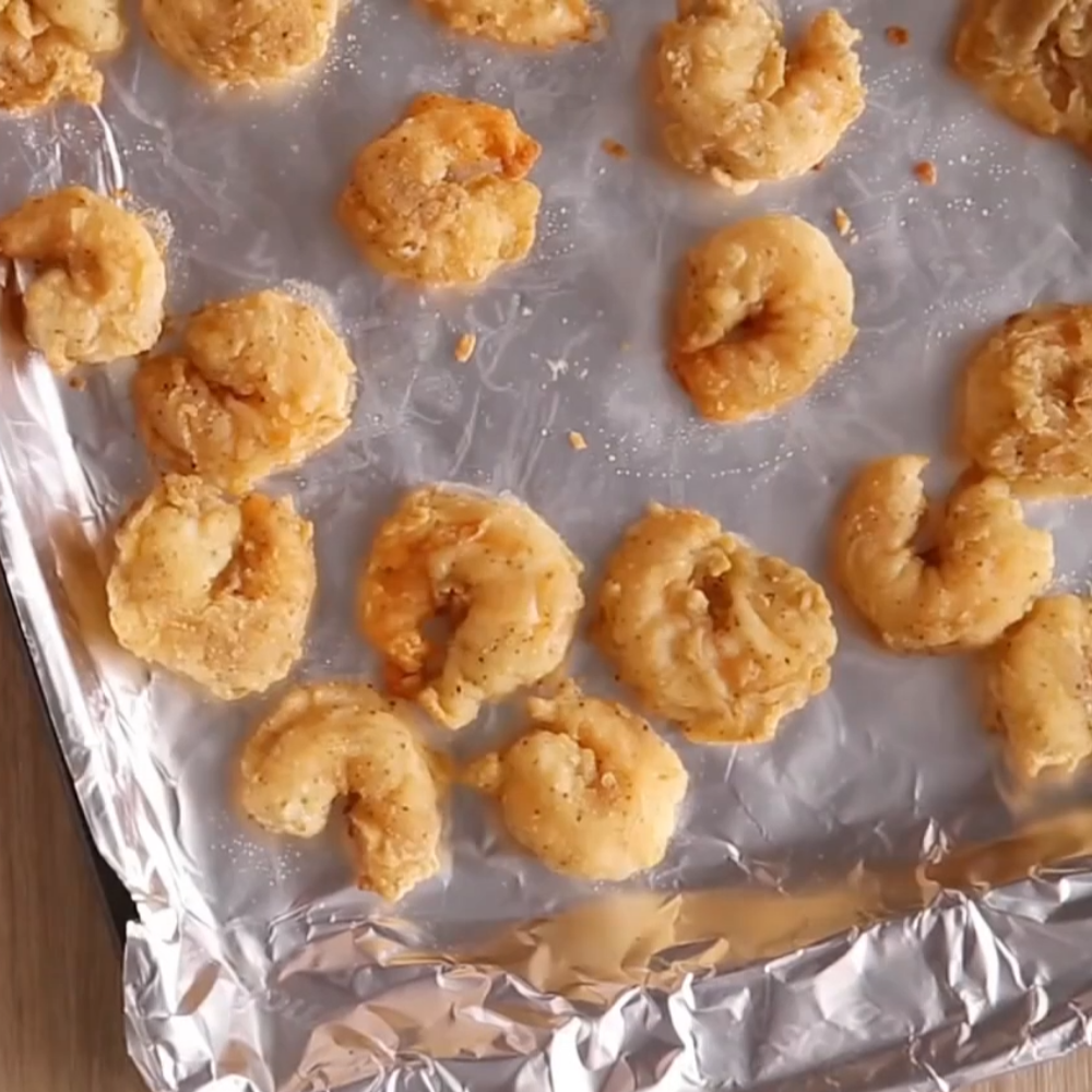 - Bake Shrimp: Spread the frozen breaded shrimp in a single layer on the second sheet pan. Bake until hot and crispy, about 10 to 12 minutes.