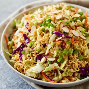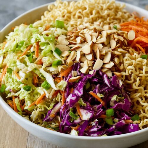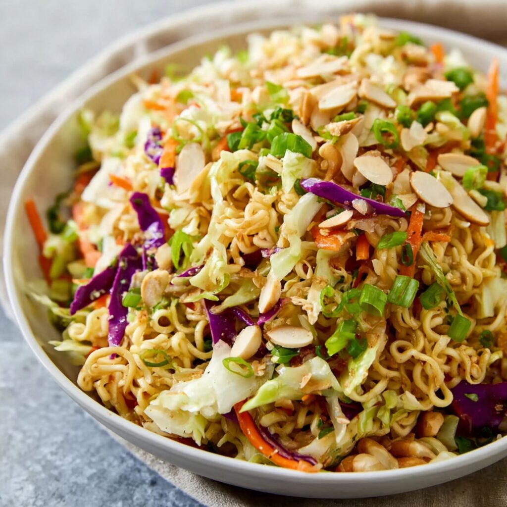 It’s crunchy, colorful, slightly chaotic in the best way, and somehow always the first thing people ask you for the recipe of… even after you confess it starts with a pack of ramen noodles.