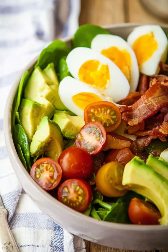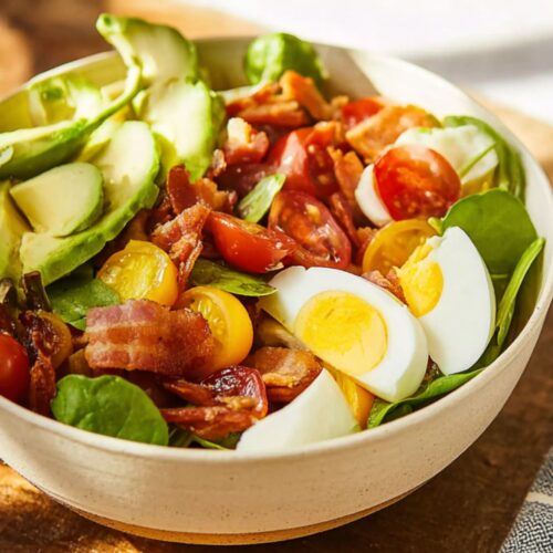 Crispy bacon isn’t a “maybe” in this salad. It’s the whole mood. Bake it on a sheet pan if you’re tired of dodging grease splatter. Bonus: your house will smell like a brunch diner, and who’s mad about that?