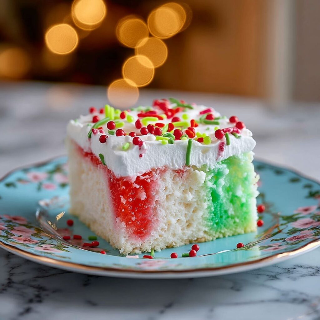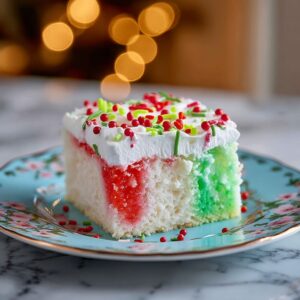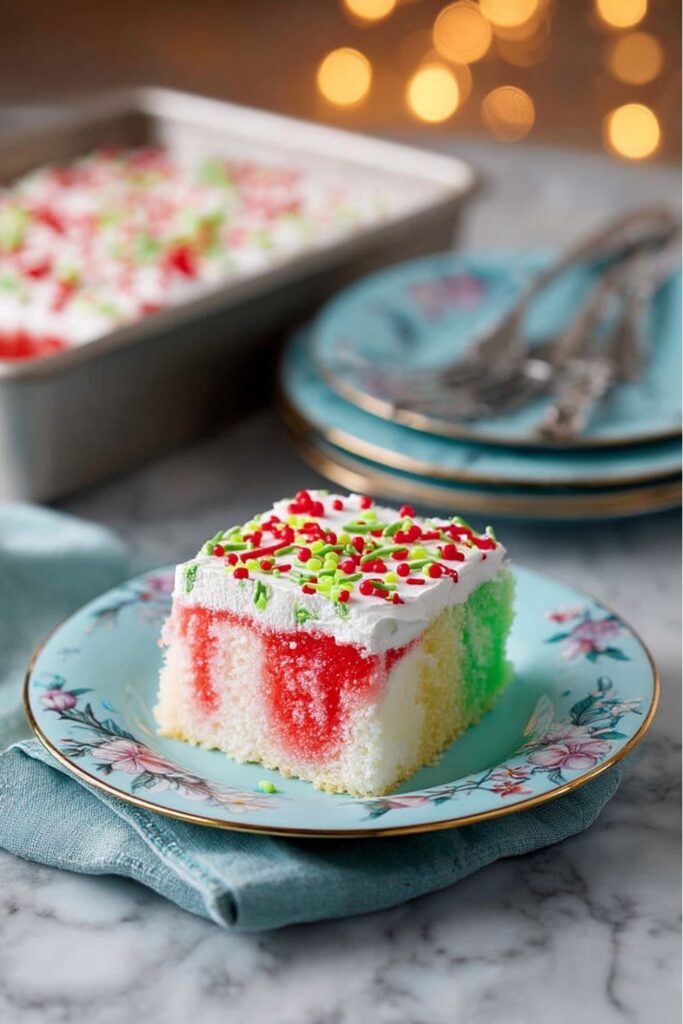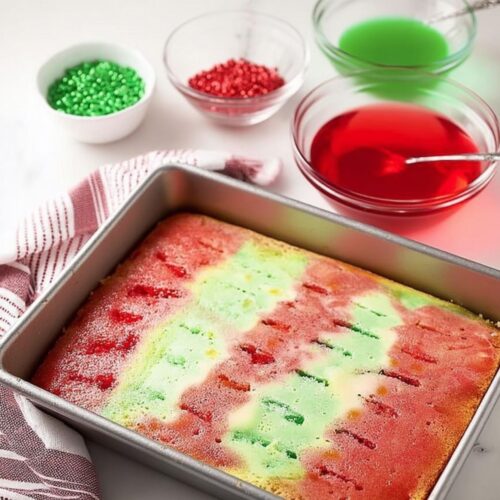 If your cake looks like a tie-dye accident, congrats—you’re doing it right. Pour the Jell-O gently so it sinks into the holes instead of pooling on top. And if you spill? Just call it “abstract holiday art.” Remember, frosting covers all sins.