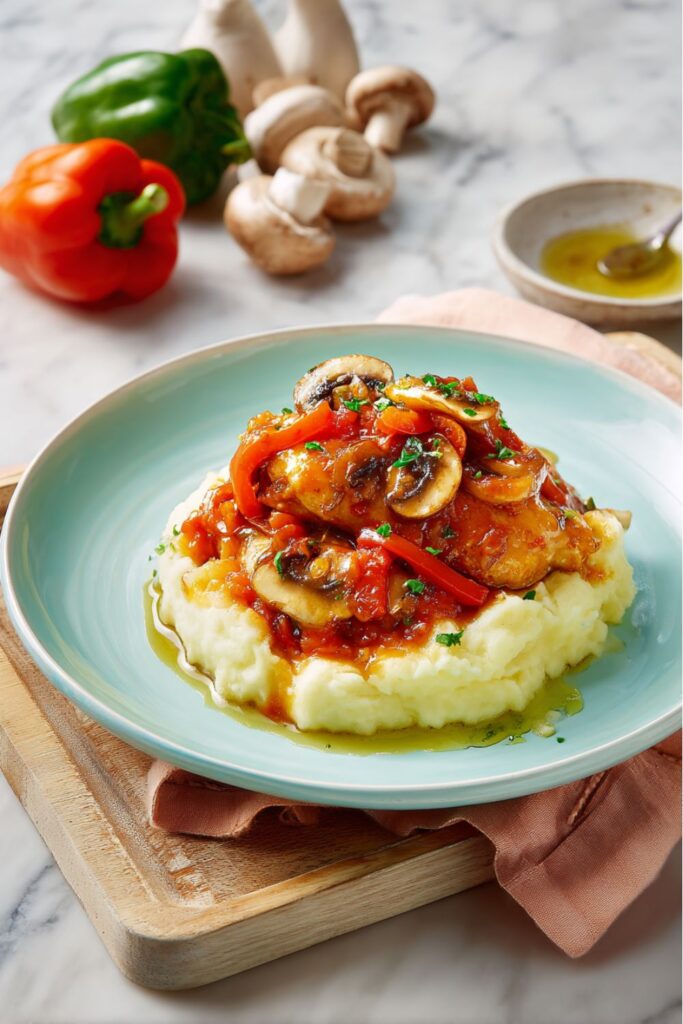 Tender chicken, mushrooms, peppers, and rich tomato sauce—comfort food that means business. This hearty skillet meal earns its spot among Stanley Tucci Recipes with bold flavor and serious cozy vibes.