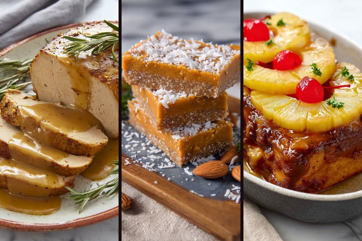 This pineapple-glazed tofu is basically the flashy cousin who shows up late but instantly steals the spotlight at a vegan Thanksgiving dinner. Sweet, smoky, and just the right amount of over-the-top, it easily holds its own among the Thanksgiving mains.